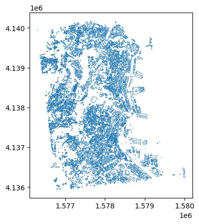 buildings = buildings[(buildings.geometry.geom_type == 'Polygon') | (buildings.geometry.geom_type == 'MultiPolygon')]