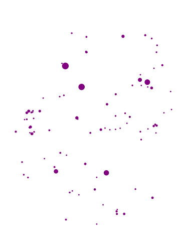 We can also convey the impact of the events through the markersize. This introduces the concept of cartogram (see below).